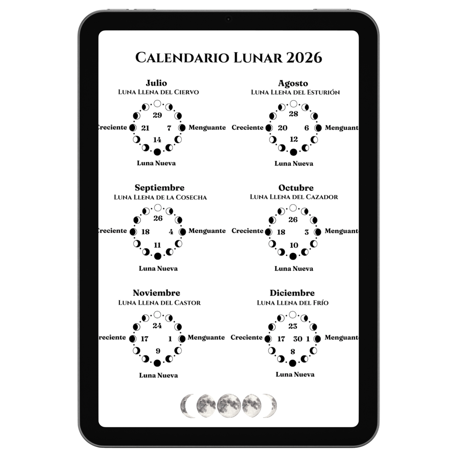 Espacios para intenciones, limpiezas y energía disponible en cada fase.